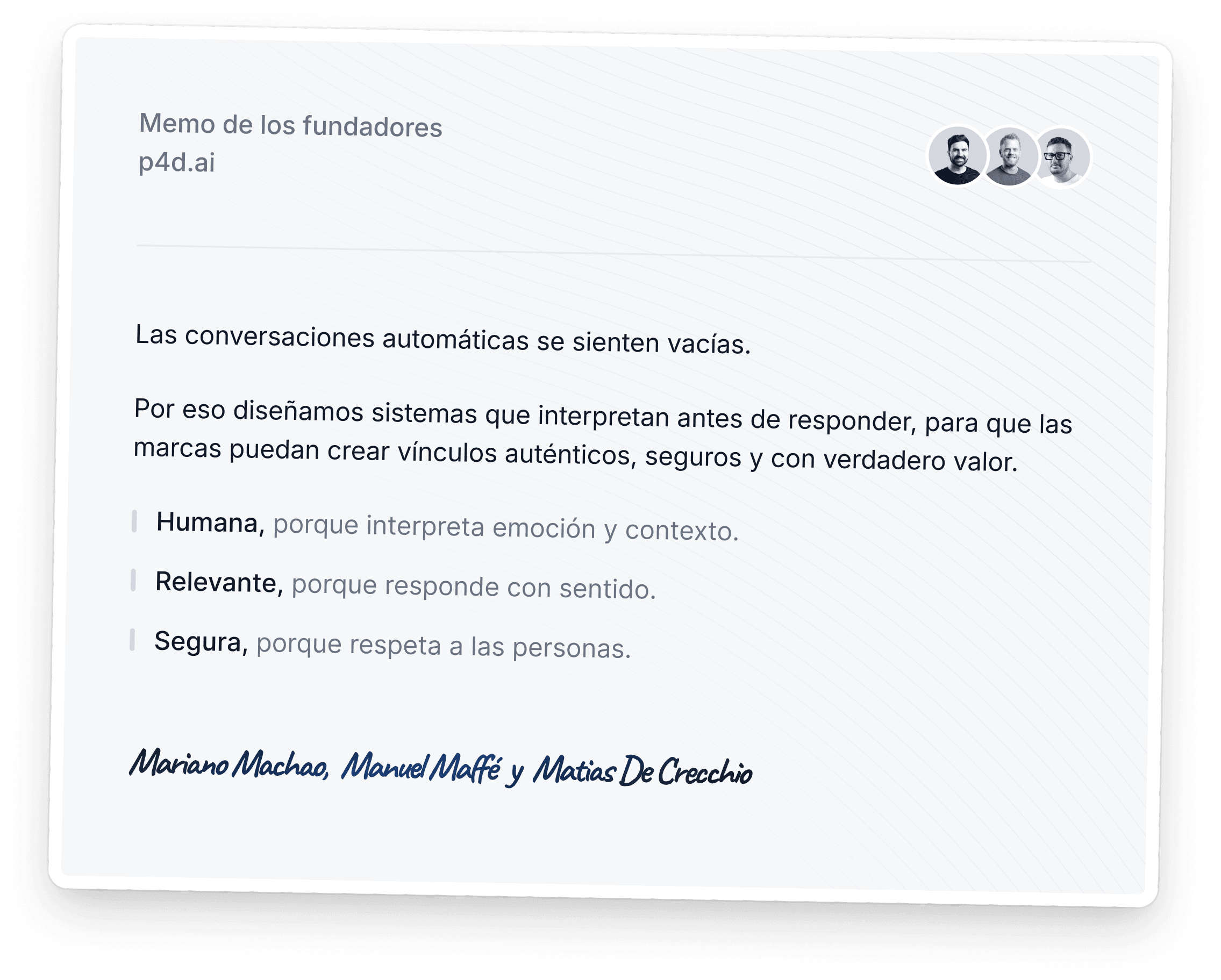 Cada conversación está cuidada con privacidad y ética, para generar confianza real.